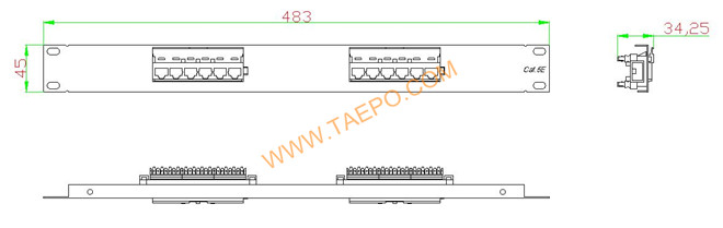 12 ports panneau de brassage, CAT5E, RJ45, UTP, 19 ", 1U