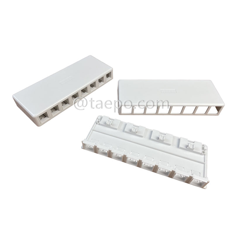 | TP-5102-8C5EU8 | Boîte de surface 8 ports, CAT5E, RJ45, 8P8C, UTP, 190x74x28 mm, style AP, sans jack Keystone |