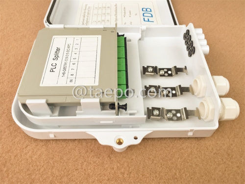 | TP-3224-8S-C | Boîte de répartiteur de fibre (FSB), extérieure, SC, 8 fibres, boîtier en plastique, 220x180x50mm, sans répartiteurs PLC en cassette |